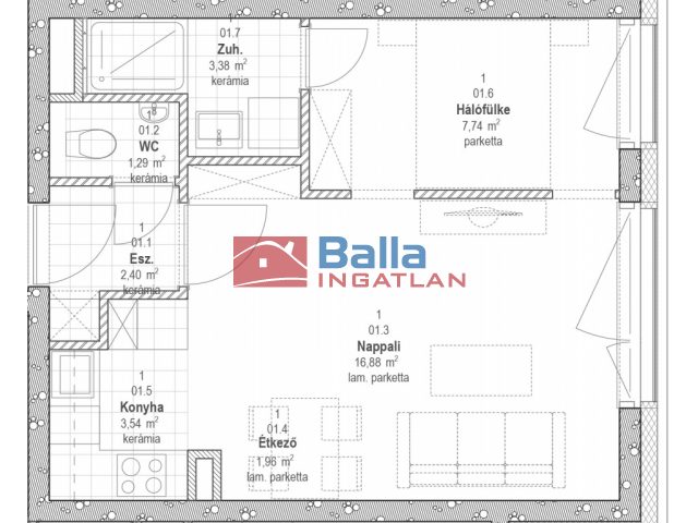 36 m² terület 1 szoba