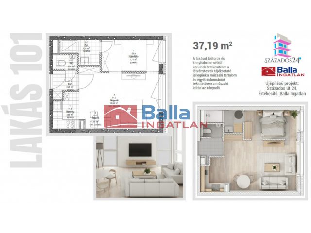 37 m² terület 1 szoba