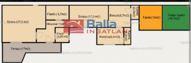 Egyéb tulajdonságok: tehermentes, azonnal költözhető, terasz (17 m²), kamra, külön étkező, garázs