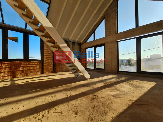 A ház eredetileg kétlakásos elrendezésben készült, de a nagyobb, több mint 200 m²-es lakás földszinti és emeleti egységre bontható, így három különálló lakás alakítható ki. Az épület jelenleg körülbelül 65%-os készültségi állapotban van: a szerkezet elkészült, a nyílászárók beépítésre kerültek, azonban a gépészet, a burkolatok és a homlokzati szigetelés még hiányoznak. Ez lehetőséget ad arra, hogy a belső tereket teljes mértékben saját ízlés szerint formálja, kompromisszumok nélkül.