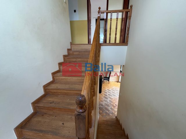 - beton lépcső faburkolattal, fa korláttal,