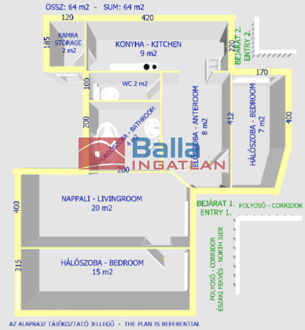 64 m² terület 2 szoba